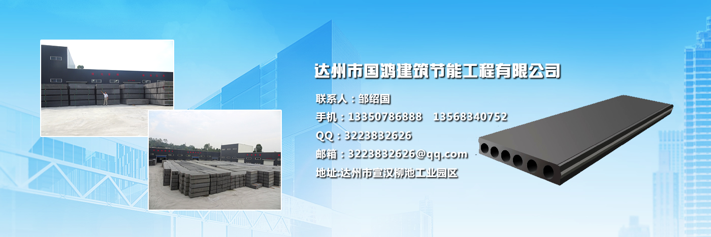 達(dá)州市國鴻建筑節(jié)能工程有限公司是川東一家自主研發(fā)輕質(zhì)隔墻板新型建材節(jié)能材料,以生產(chǎn)、銷售及安裝為一體的綠... 查看更多>>